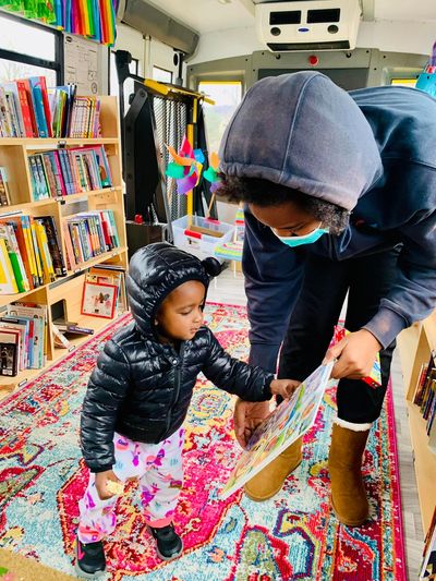 The book bus visits some of our smallest guests at the Early Learning Center program, located in The Jefferson School. The Center provides full-day early learning for infants through preschoolers.